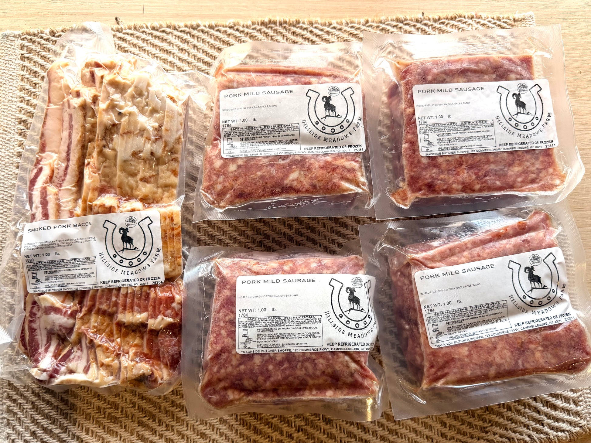 This bundle is perfect for a simple, yet tasteful and filling breakfast! With four mild sausage packs (total of 4lbs.) and a 1lb. of smoked pork bacon, cook up our delicious pasture raised pork.